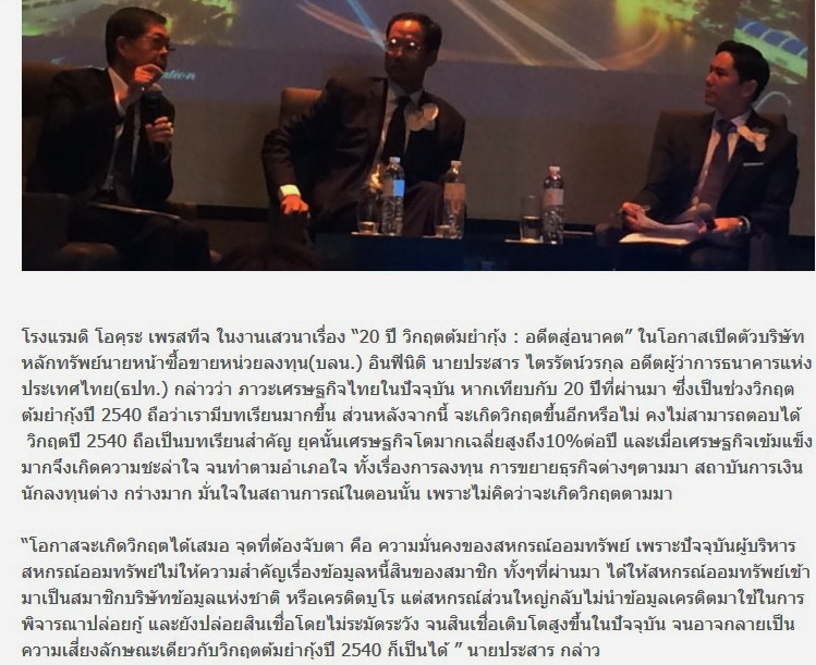 ประเทศไทยมีโอกาสเกิดวิกฤติการเงินเหมือนปี 2540 อีกไหม ?