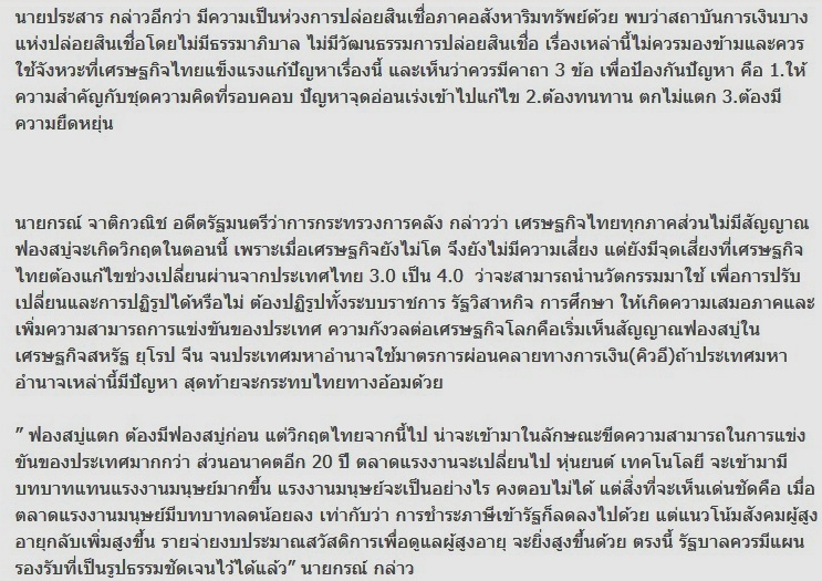 แบงก์ชาติมองเห็นอะไร ไม่ใช่ประเด็นสำคัญเท่าเรามองเห็นภาพเดียวกับแบงก์ชาติหรือไม่ มีคนโดดลง ก็ต้อมมีคนโดดขึ้นรถ เพราะที่นั่งจะว่างไม่ได้ ว่าแต่ท่าน? จะโดดขึ้นหรือโดดลง? ป.ล. กุ้งแพงเปลี่ยนเป็นเนื้อแ