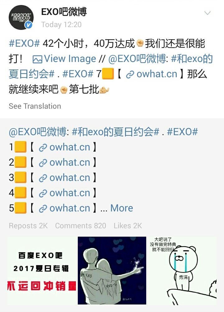 [EXO] EXOBAR เปิดระดมทุนสนับสนุนอัลบั้มใหม่ของEXO ยอดทะลุ400Kหยวน💐👏