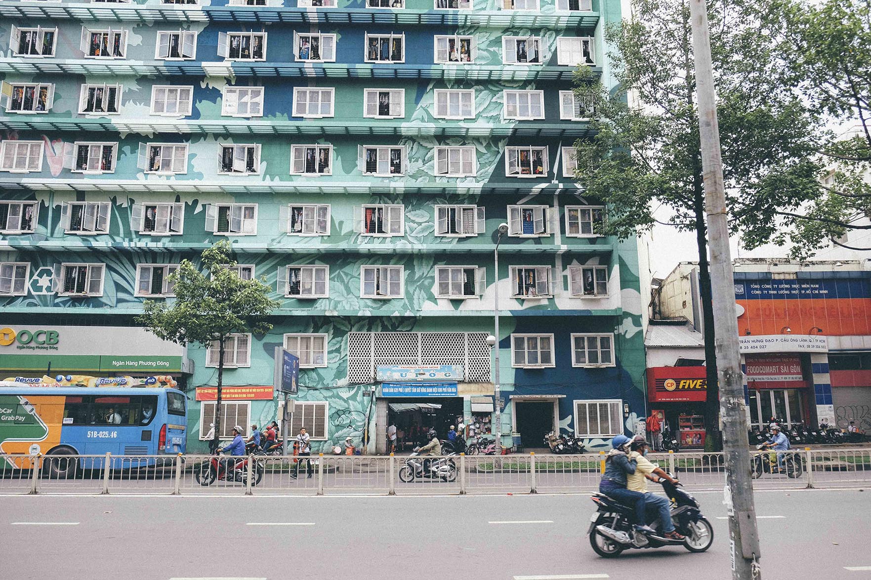 ภาพตึกเพ้นท์ระหว่างเดินไปจองทัวร์ในโฮจิมินท์ สวยงามมมมม
