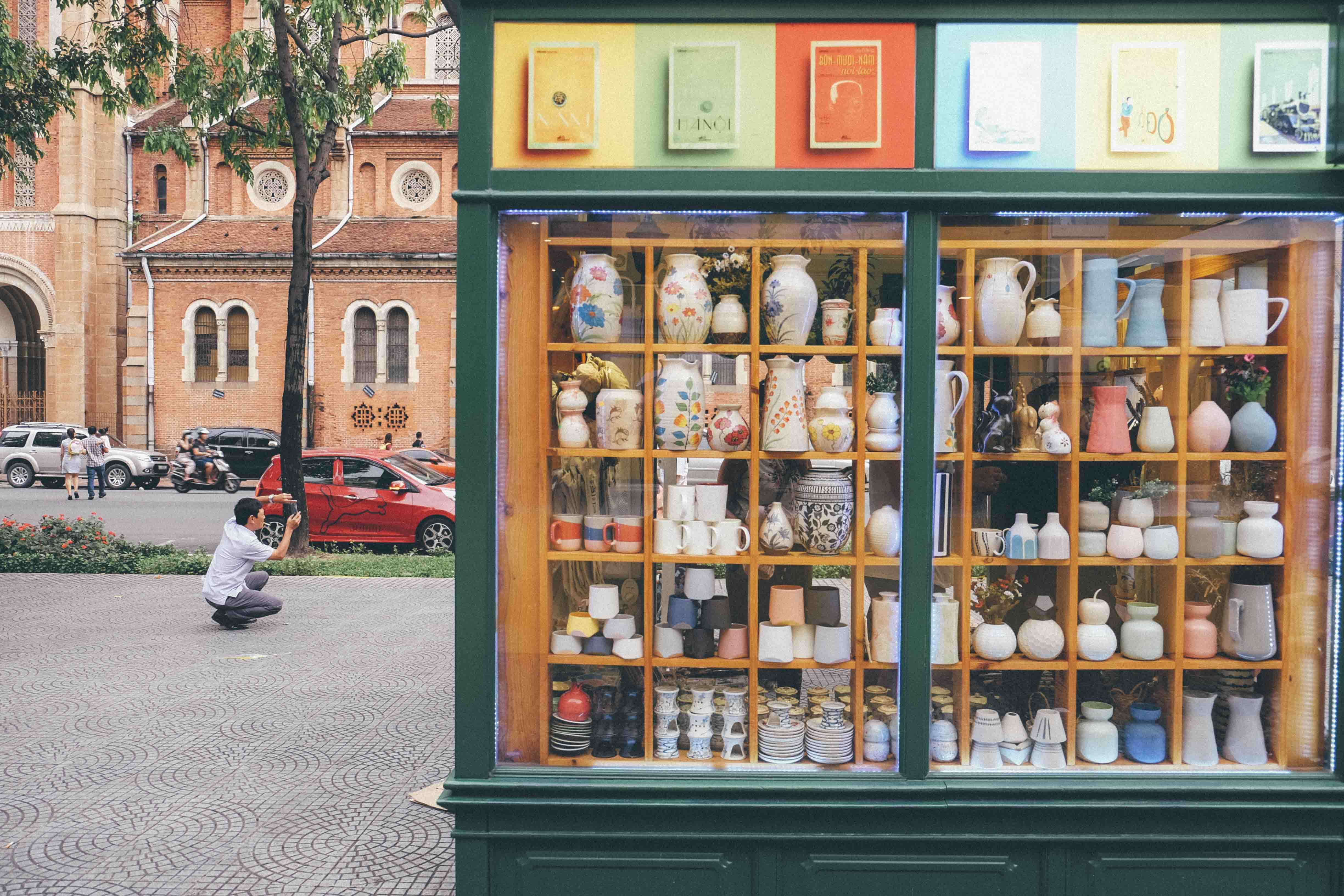 ร้านขายเซรามิกน่ารักด้านข้างโบสถ์