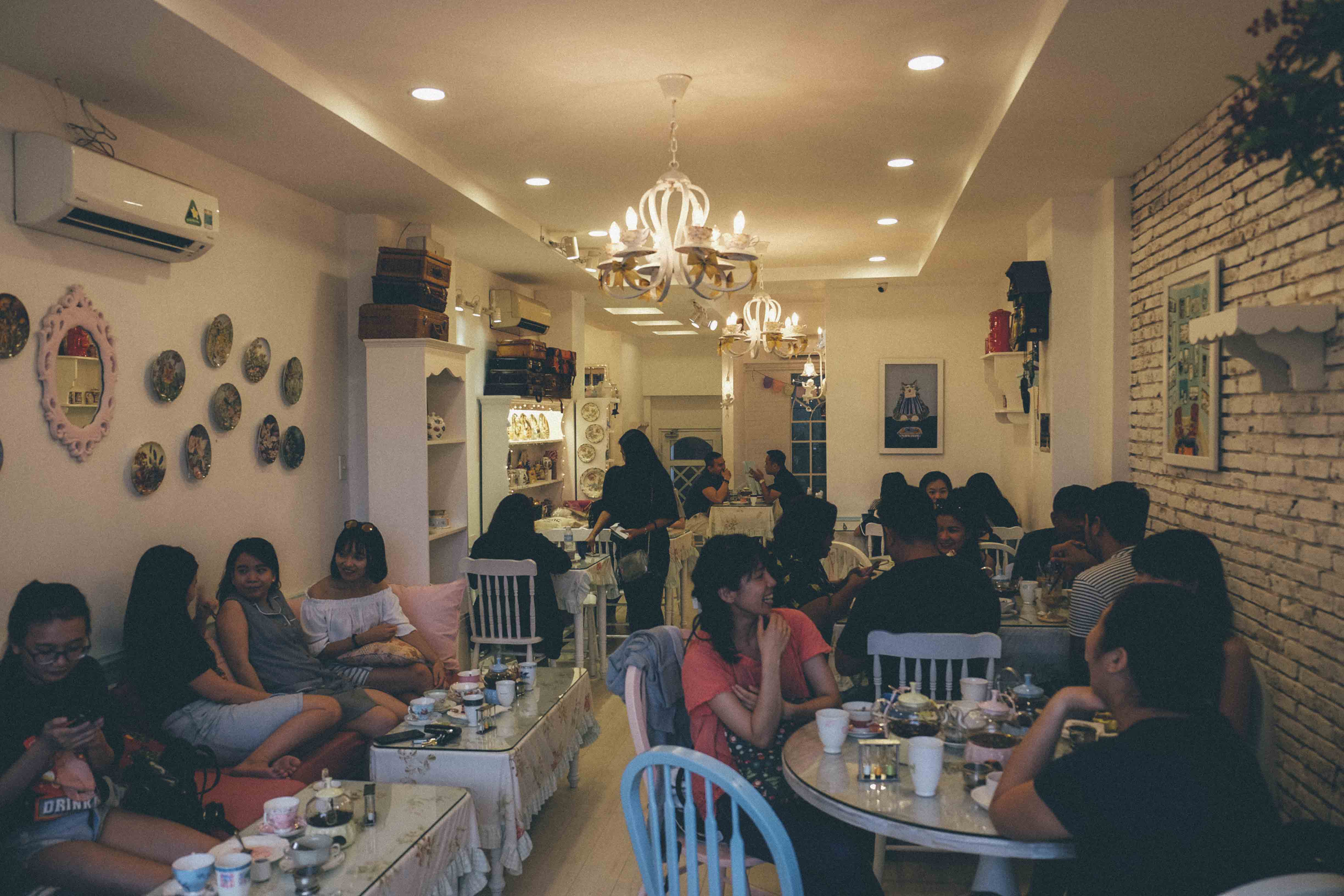 โดย Cafe Apartment นี้เคยเป็นตึกเก่าแบบเก่ามากกกก ซากสีกำแพงผุพังแต่ก็ดูสวยแบบอาร์ตๆดี เค้ารีโนเวทให้แต่ละบล็อคเป็นร้านคาเฟ่กับขายของชิคๆ เราก็เดินดุ่มๆขึ้นไปส่องดูว่ามีร้านไหนน่านั่งบ้าง จนมาจบที่ร้าน Partea เป็นคาเฟ่ จิบน้ำชาแบบผู้ดีอังกฤษ (เชิดหน้าปรายตามองทุกคนในร้านแบบไฮโซ) เข้าไปร้านก็น่ารักดีตกแต่งแบบผู้ดีอังกฤษสไตล์ vintage แต่เราเป็นคนชอบกินชา กินได้หมดทุกชนิดเลยมาลองดูกัน เค้าจะมีให้สั่งเป็นเช็ตน้ำชามีแบบ 1 ถ้วยหรือ 2 ถ้วย แต่มีเก๋ตรงที่ เค้าให้เราเดินไปเลือก แก้วชาเเองว่าอยากได้ลายไหน อะน่อววว เผื่ออยากเอาไปเป็นพร็อบถ่ายรูปสวยๆคุมตีมอะไรก็ว่าไป แล้วเราสมารถเลือกชนิดชาข้างในได้ เราเลือกเป็น ชามิ้นท์ เพราะเรากับพี่ชอบทั้งคู่ พอถึงเวลาเค้าจะเสิร์ฟเป็นกาที่มีใบชาลอยอยู่พร้อมกับที่กรองชา แล้วก็มีนาฬิกาทรายจิ๋วไว้จับเวลาว่าอยากได้ที่ความเข้มข้นระดับไหน มีน้ำตาลกับครีมนมให้เติมด้วยค่ะ จากนั้นก็สั่งเซ็ตขนมค่ะเป็นเค้กช็อกโกแลตลาวากับไอศครีมช็อค รสชาดก็อร่อยดีแต่หวานไปนิดนุง เบ็ดเสร็จราคาถ้าเทียบกับคาเฟ่ระดับนี้ในไทยถือว่าถูกนะ หมดไปคนละ 95,000 ดอง