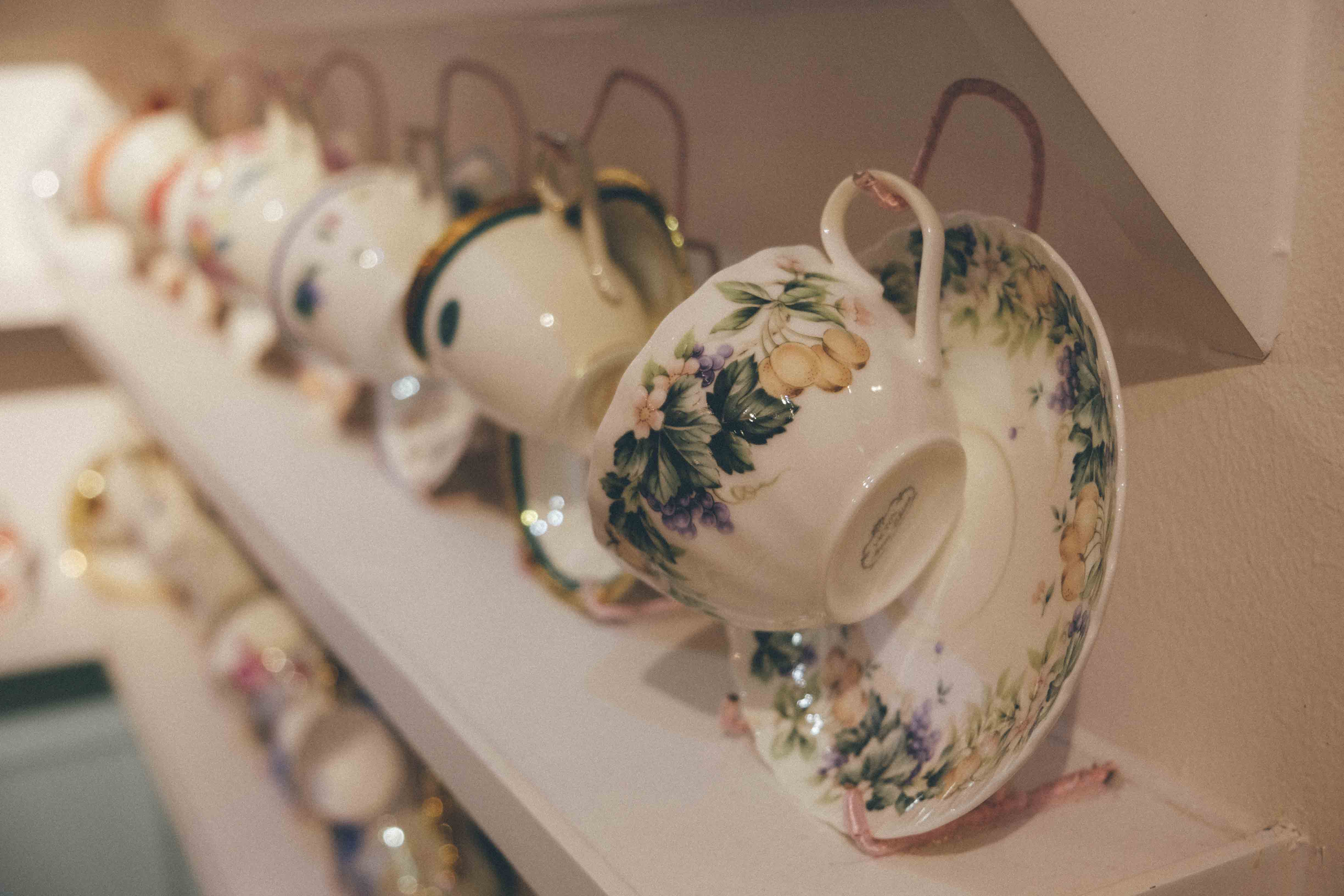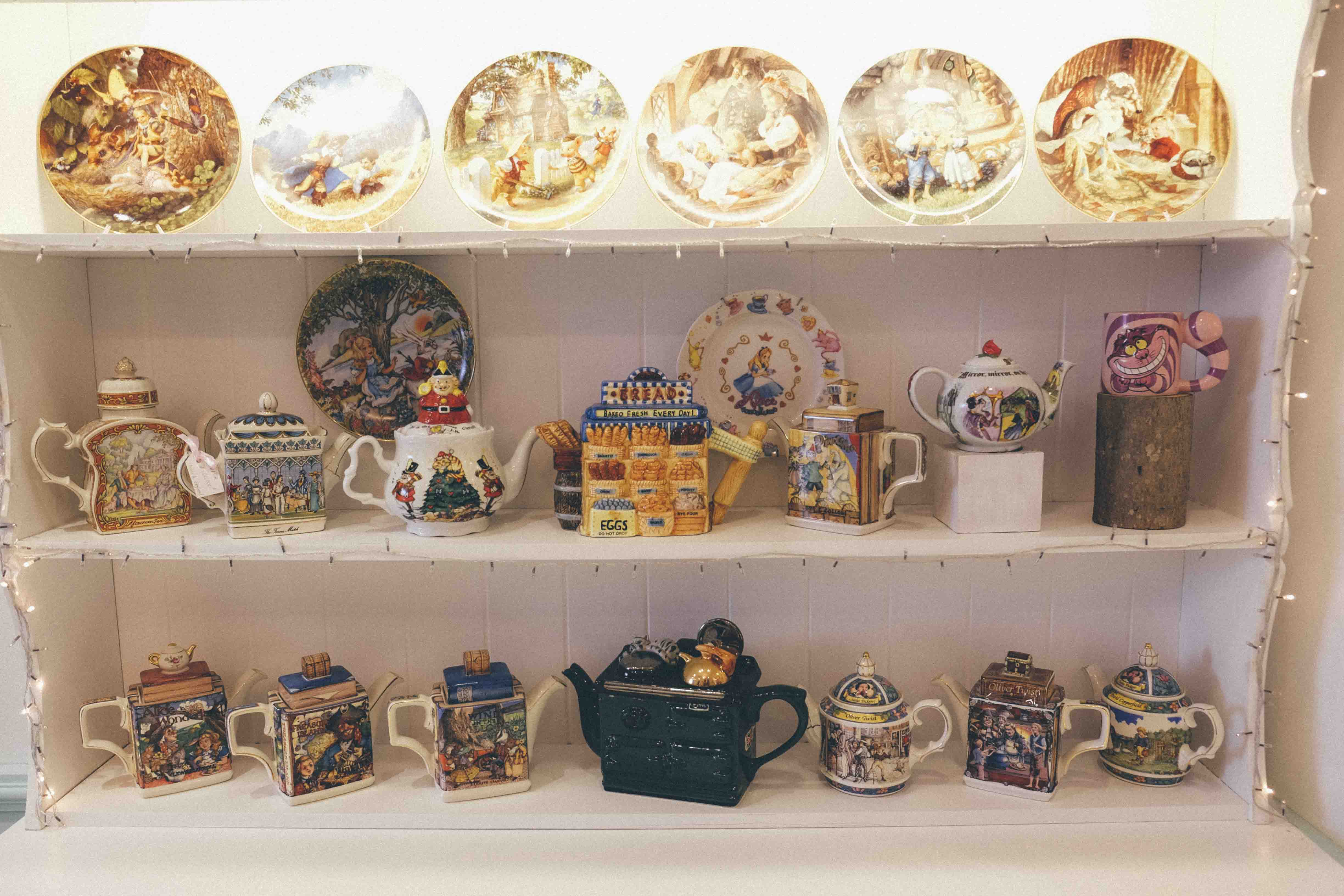 อันนี้เป็นแถวถ้วยชาเรียงราย ให้เราเลือกถ้วยได้เองค่ะ เดินไปหยิบได้เลย
