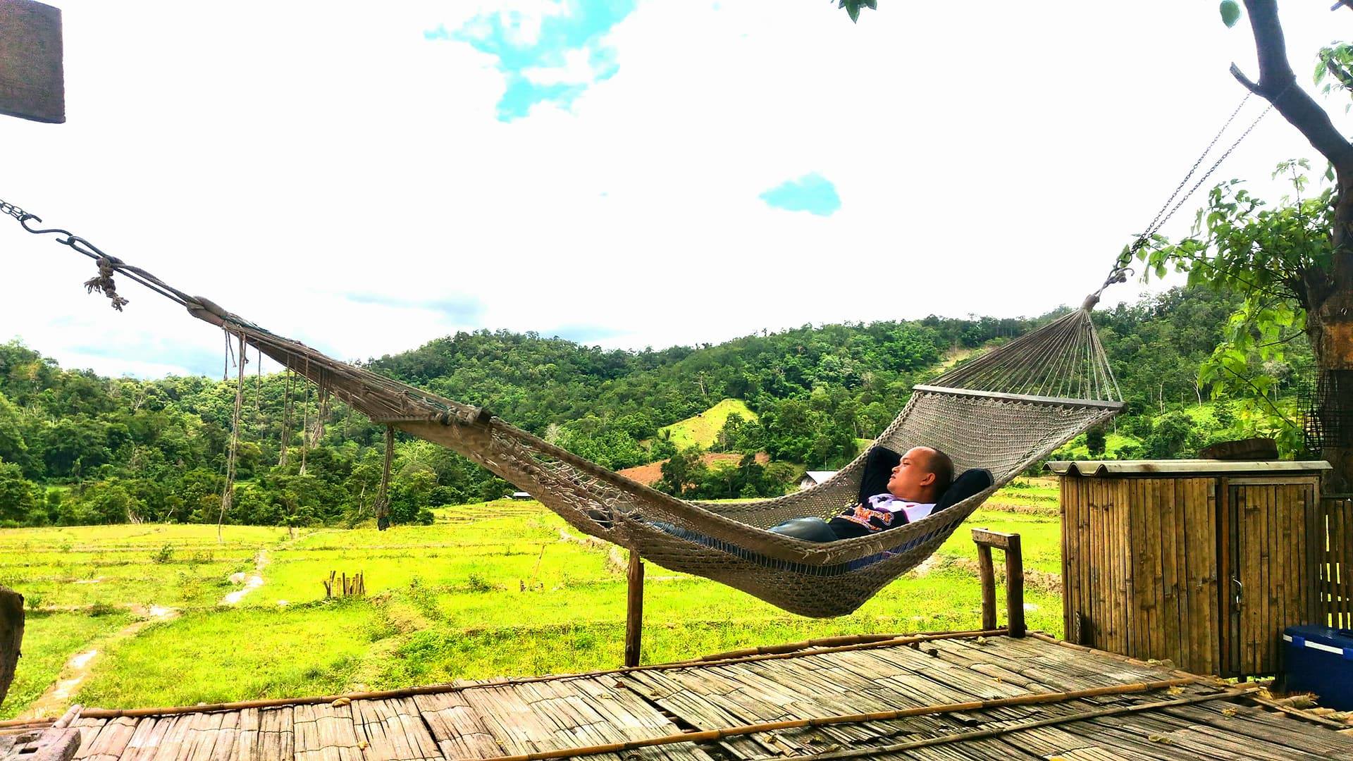 ผมใช้เวลานอนเล่นๆอยู่ที่นี่นานเหมือนกันครับ นอนคิดถึงบรรยากาศที่บ้านเก่าๆสมัยเป็นเด็กนะ สมัยกลิ่นโคลนสาปควาย ในวิถีที่ไม่เร่งรีบเหมือนเช่นปัจจุบันนี้นะครับ นั่งไปคิดไปยิ้มไป...นิเราบ้าไปรึเปล่านิ 555