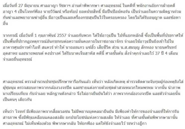 ศาลอุทธรณ์ พิพากษากลับ ยกฟ้อง นายวิวัฒน์ หรือ ท็อป ยอดประสิทธิ์ มือปืนป๊อปคอร์น เหตุไม่มีประจักษ์พยานยืนยันเป็นคนก่อเหตุยิงใส่ช่วงชุมนุมแยกหลักสี่ 27 มิ.ย. 60 - ศาลอุทธรณ์ พิพากษากลับ ยกฟ้อง นายวิวัฒน