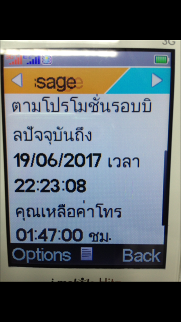 1. เรื่องมันเกิดขึ้น ณ วันที่ 19/6/60 นี้หลังจากผมได้ใช้โทรศัพท์เสร็จ ก็ทำการเช็ค ยอดนาทีใช้งานคงเหลือ เมื่อเวลา 22:23:08 ระบบแจ้งว่า