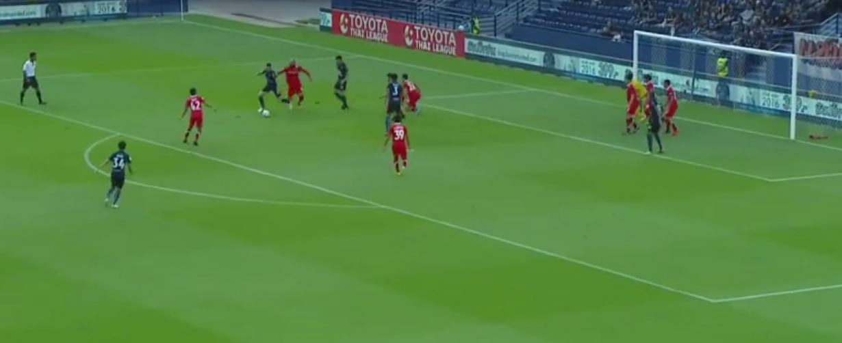 สปีดมารับบอล เลี้ยงจี้เข้าหาประตู กองหลังมาเลย์สปีดวิ่งตามประกบไม่ห่าง ตอนนั้นเอง เหมือนเจจะกดปุ่ม turbo boost แล้วสปีดก็เพิ่มขึ้นอย่างเหลือเชื่อ วิ่งหนีห่างไปอีก 2-3 ก้าว ก่อนตบเข้ากลาง ก่อนให้เกร