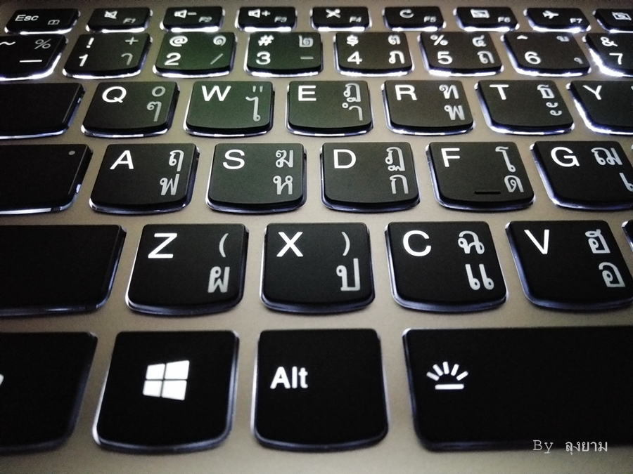 ปุ่มกดมีไฟ Backlit สีขาวมาให้ สามารถปรับระดับความสว่างได้ 2 ระดับ แสงรอดทุกตัวหนังสือครับ หรือที่เรียกกันทั่วไปคือปุ่มแสงลอดนั้นเอง เพิ่มความสะดวกสบายในการทำงานในที่แสงน้อย หรือสำหรับคนที่ชอบทำงานตอนกลางคืน (การเข้าฟังก์ชั่น กด FN+Spacebar)