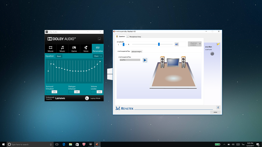 JBL®stereo speakers with Dolby Audio™ Premium เสียงผ่านลำโพง เสียงดีมากๆครับ เท่าที่ผมใช้ ultrabook มาหลายตัว ต้องยอมรับว่า Lenovo YOGA 910 ให้คุณภาพเสียงดีมากเลยทีเดียว เสียงมีมิติน่าฟัง