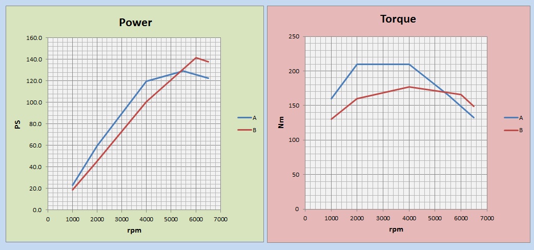 รถ 2 คันนี้ตัวถังเหมือนกันทุกอย่าง น้ำหนักเท่ากัน เกียร์ชุดเดียวกัน ต่างกันที่เครื่องยนต์ ซึ่งสเปคเครื่องยนต์เป็นไปตามรูป เป็นเครื่องเบนซินทั้งคู่ รถคันไหนจะเร่ง 0-100 ได้เร็วกว่ากัน