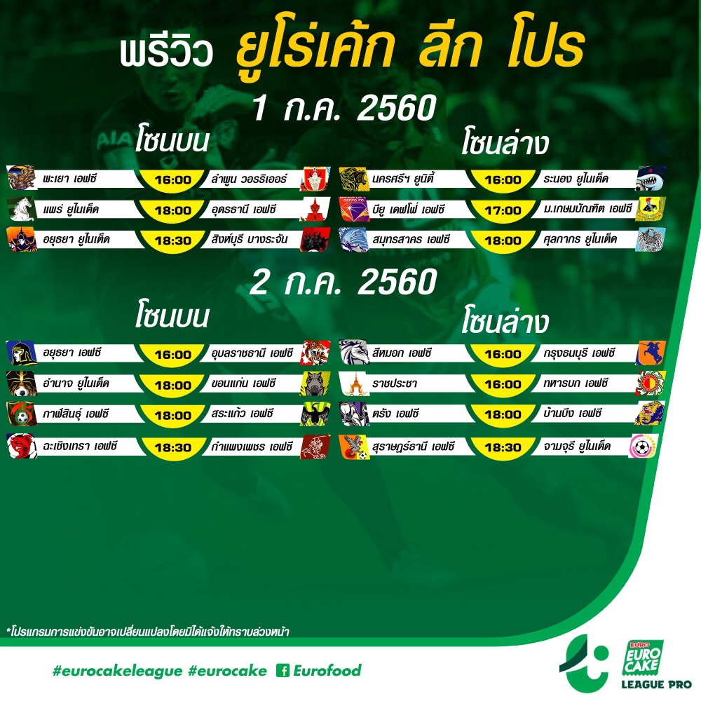 ขอบคุณข้อมูลจาก ยูโร่เค้ก ลีก ผู้สนับสนุนฟุตบอล ยูโร่เค้ก ลีก โปร และ ยูโร่เค้ก ลีก อย่างเป็นทางการ