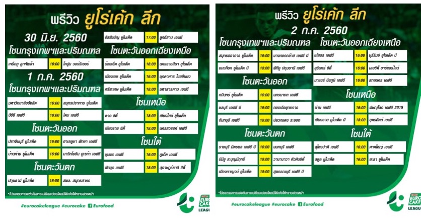 ขอบคุณข้อมูลจาก ยูโร่เค้ก ลีก ผู้สนับสนุนฟุตบอล ยูโร่เค้ก ลีก โปร และ ยูโร่เค้ก ลีก อย่างเป็นทางการ