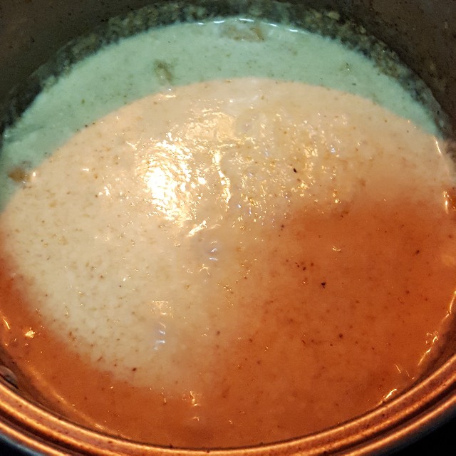 2. พอกุ้งเริ่มสุกก็เติมน้ำกะทิลงไปค่ะ ตามด้วยน้ำเปล่า โดยให้ปริมาณน้ำกะทิมากกว่าน้ำเปล่า เพื่อให้น้ำแกงออกมาข้นหน่อย จะได้ราดข้าวอร่อยค่ะ