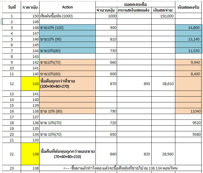 2.ถ้าราคาลง 2 ช่อง ให้ขายหุ้น 10%