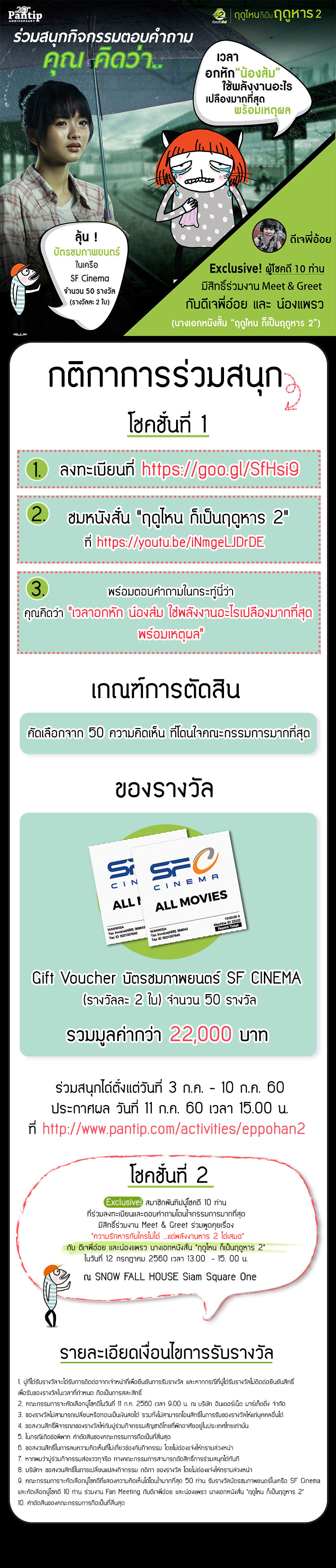 รับรางวัล บัตรชมภาพยนตร์ในเครือ SF Cinema (รางวัลละ 2 ที่นั่ง)