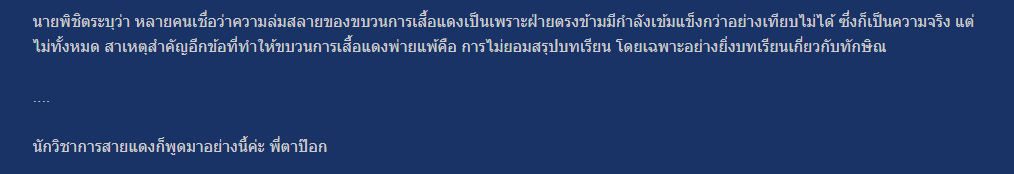ที่มาจากบทความเรื่อง อ.พิชิต ชี้ แดงล่มสลาย เพราะไม่สรุปบทเรียน “แม้ว” https://www.matichon.co.th/news/515392