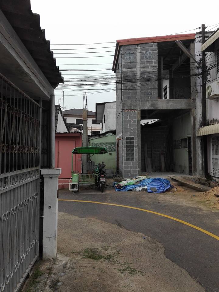 เราบอกมันมันเอารถมาจอดหน้าบ้านเราแบบนี้ค่ะ บ้านมันสีส้มข้างๆ