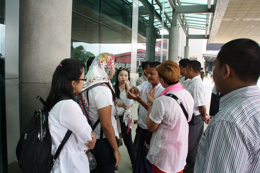 เดินทางจากสนามบินดอนเมืองกรุงเทพถึงสนามบินย่างกุ้งประมาณ 17:00 น. (เวลาเมืองไทยเร็วกว่าพม่า 30 นาที)มีรถเท็กซี่มารอรับเพราะได้ติดต่อจองไว้ล่วงหน้าชื่อ Mr Aung Ko ซึ้งพอพูดคุยสื่อสารภาษาอังกฤษได้เลยไม่
