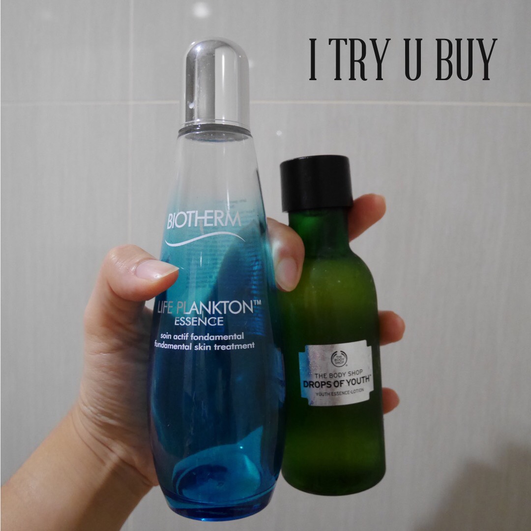 ตัวขวา Drop of Youth ของ Body Shop ตัวนี้เป็น Essence Lotion เบาบางคล้ายกับตัวขวา แต่จะหนืดๆกว่านิดหน่อย