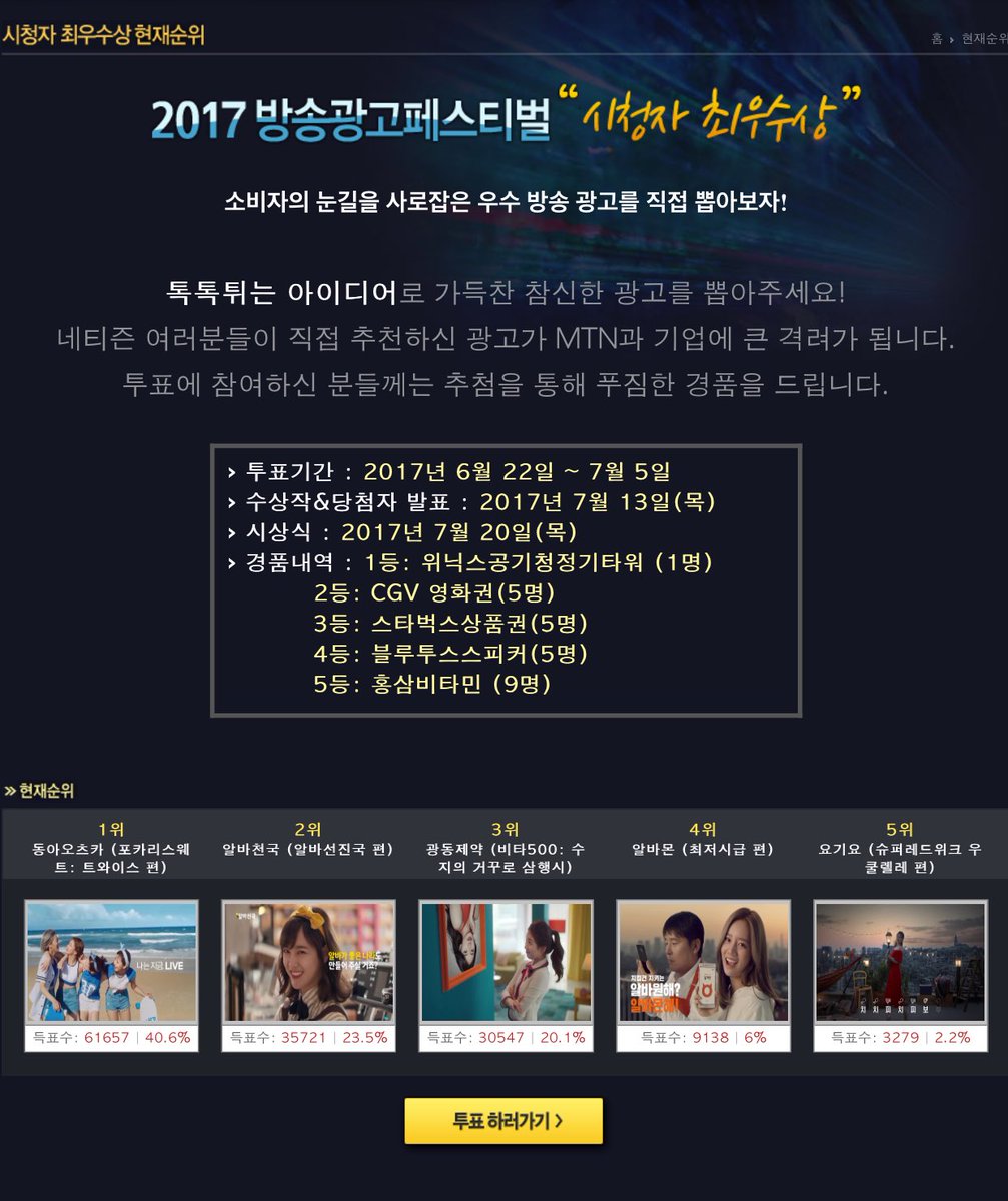 CF Pocari Sweat ของทไวซ์ถูกเลือกให้เป็นโฆษณาที่ดีที่สุดจากผู้ชมโดยมีผลโหวตถึง 40.6% (61,657 โหวต)