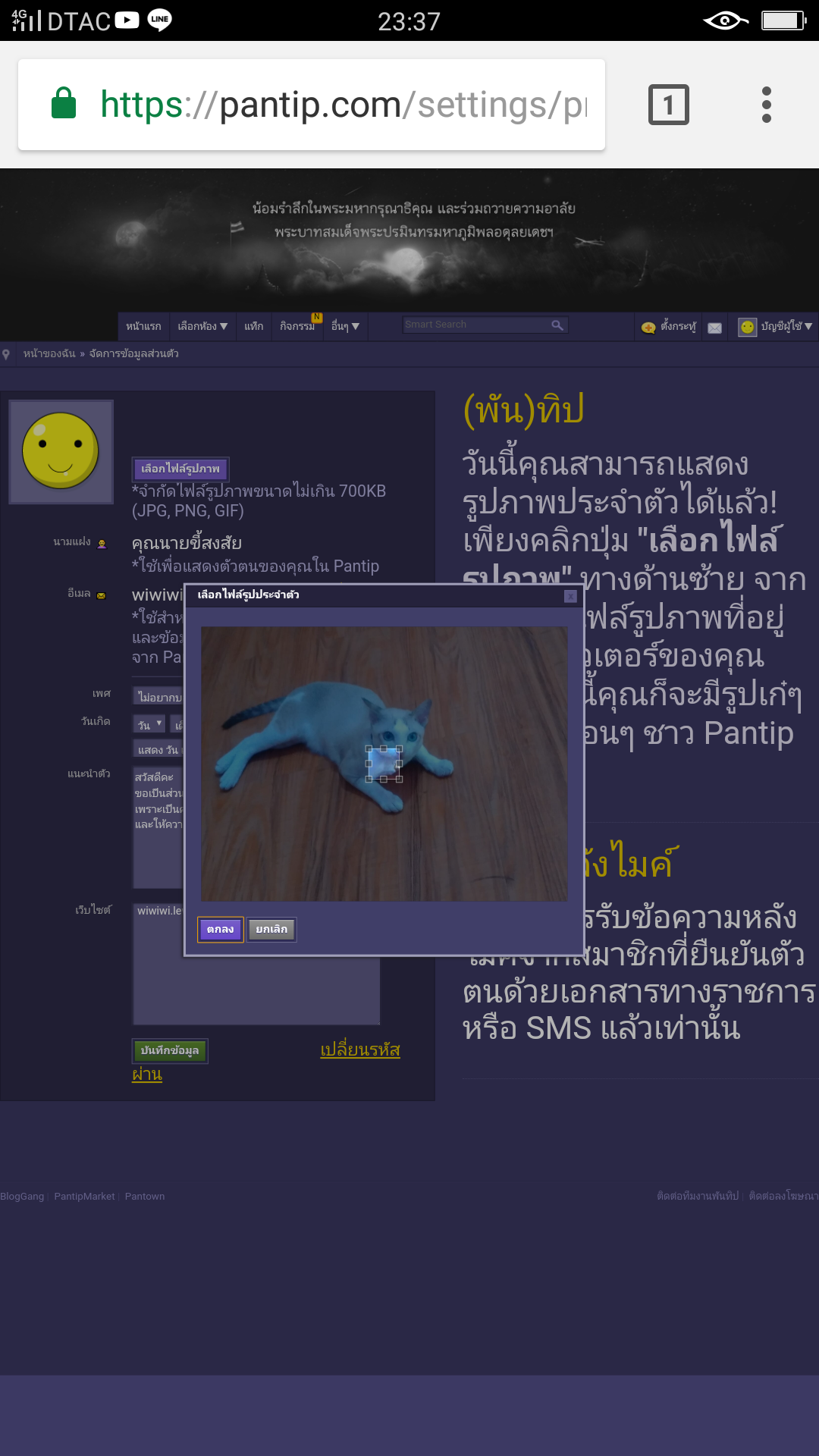 ทำไมเราเปลี่ยนรูปโปไฟล์ในพันทิปไม่ได้คะ