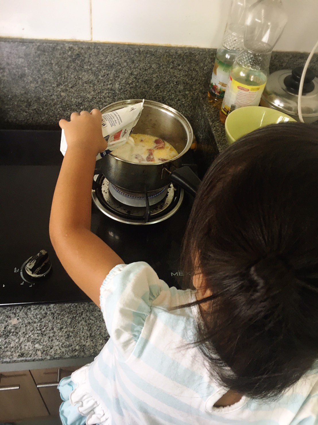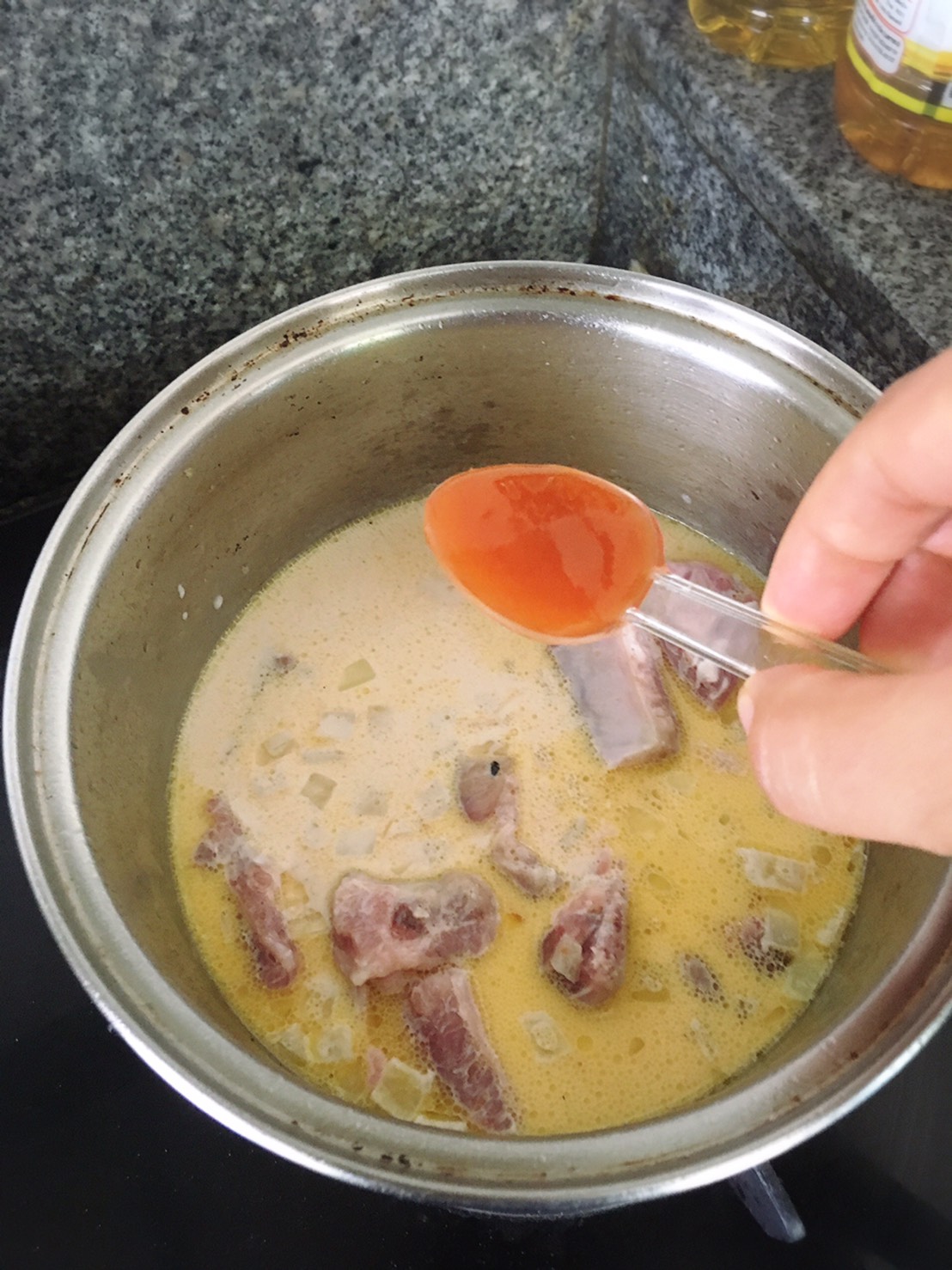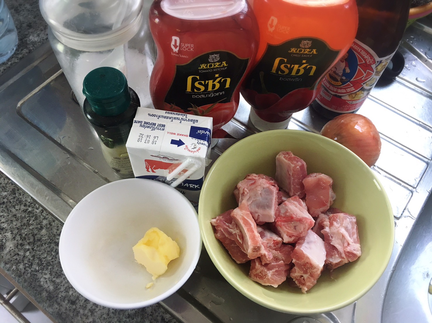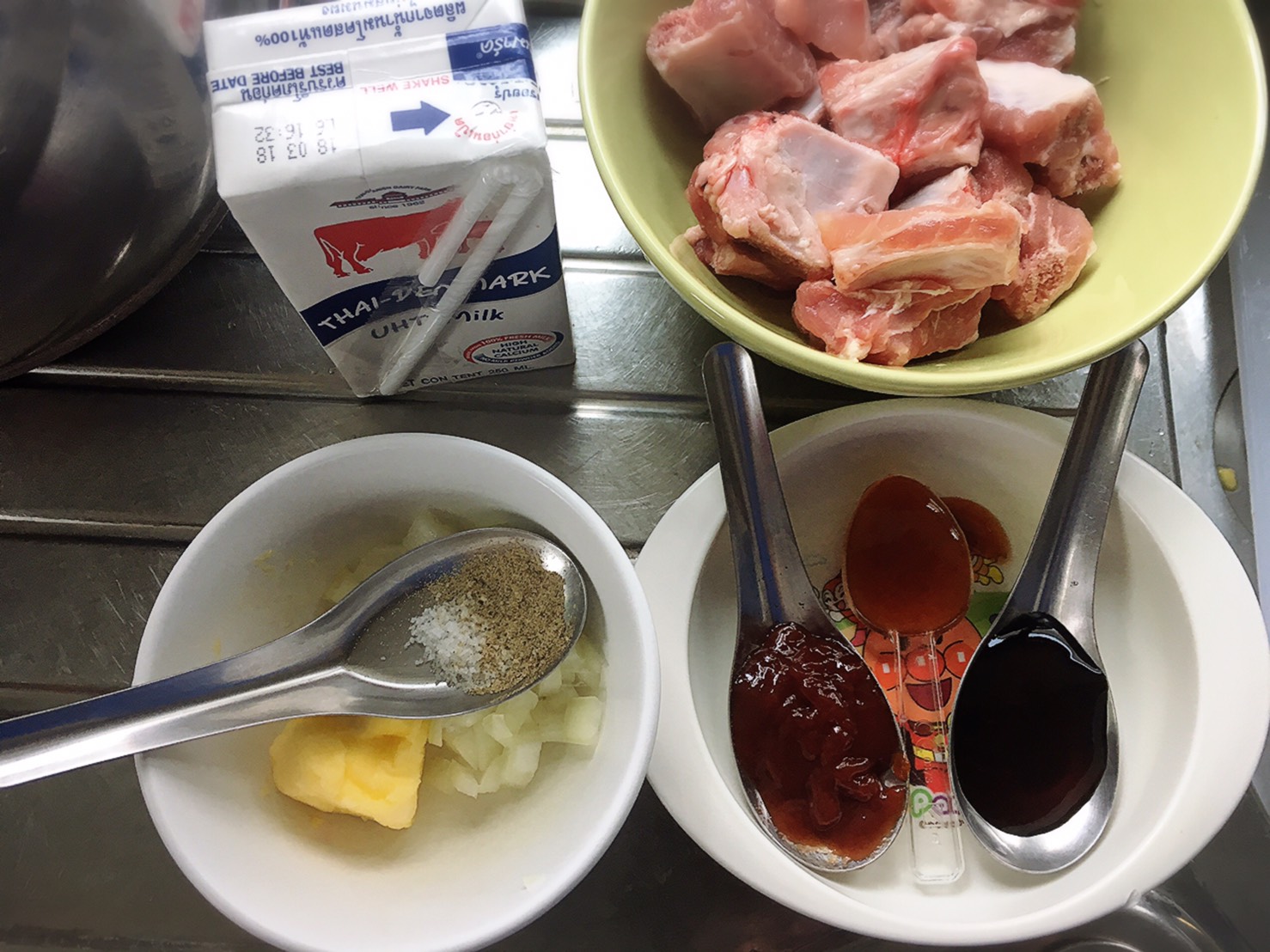 4. ตามด้วยซี่โครงหมูเรา และนมสดเลย (แอบมีเด็กมา อยากช่วยคุณแม่ทำด้วยค่ะ^^)