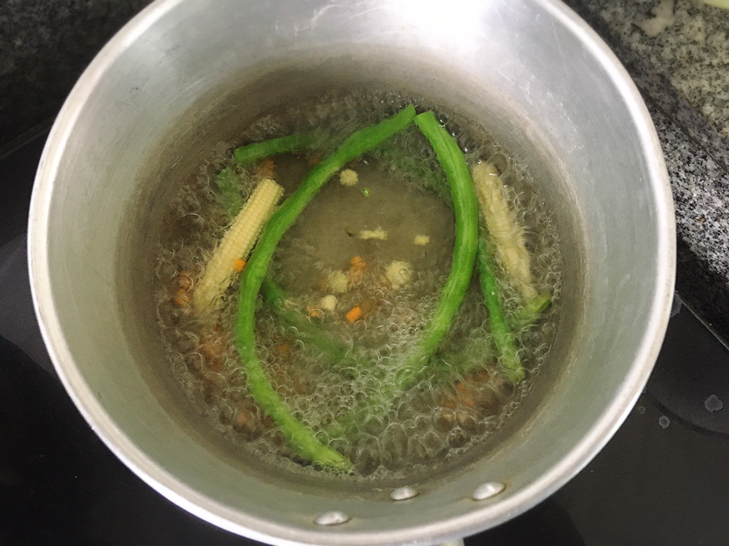 จากนั้นเราก็ก็นำผักไปลวกให้สีสวย น่าทาน