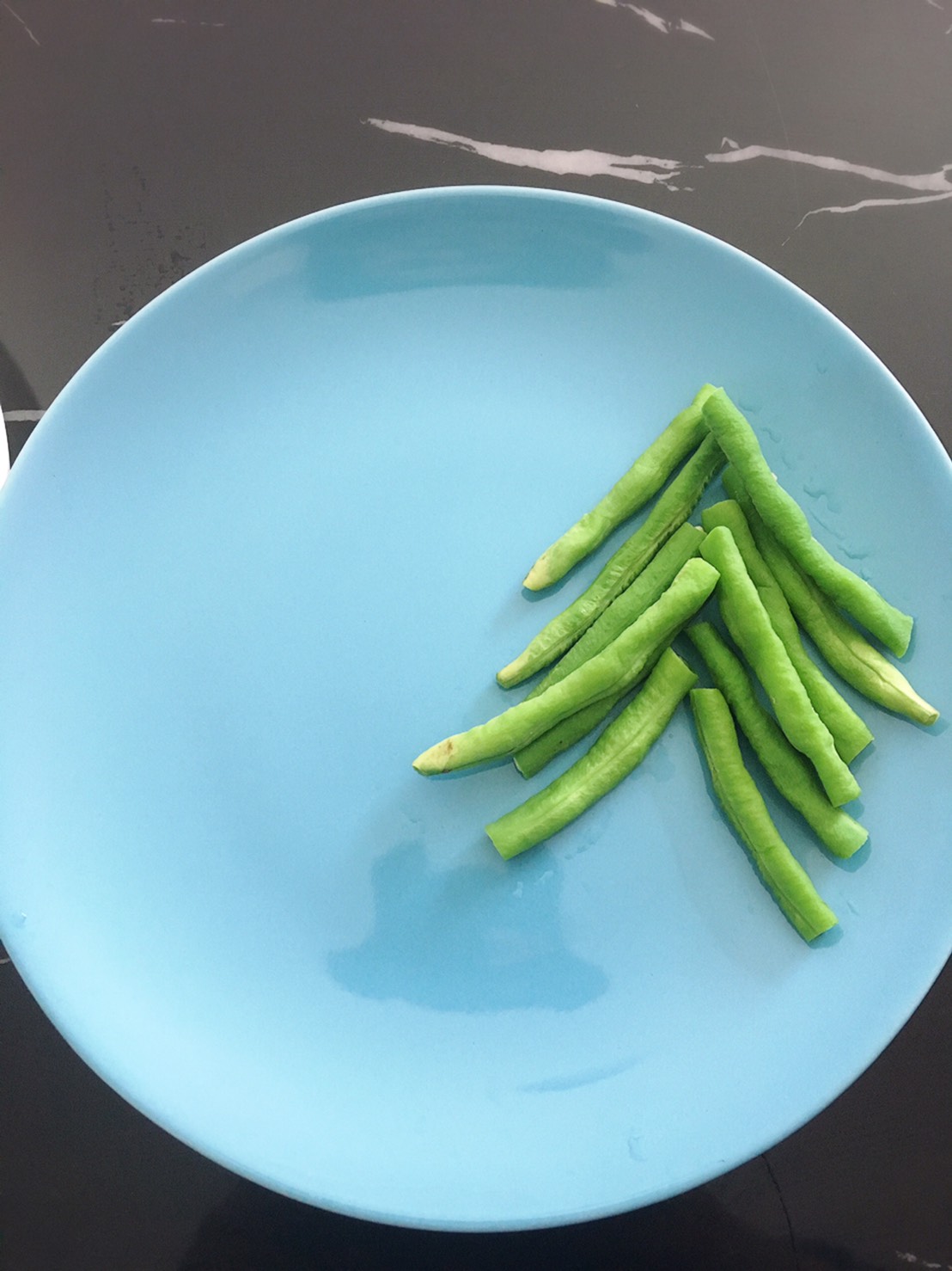 เสร็จแล้วก็มาหั่นถั่วฝักยาวเลยค่ะ เราจะเริ่มทำต้นคริสต์มาสกันก่อน จักเรียงซ้อนๆกันแบบนี้