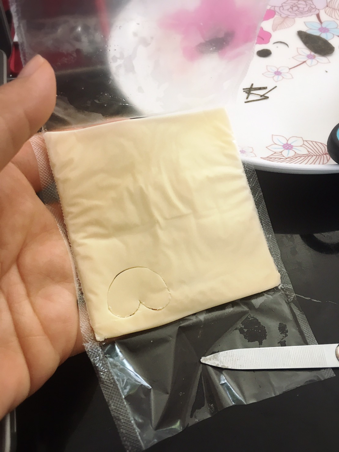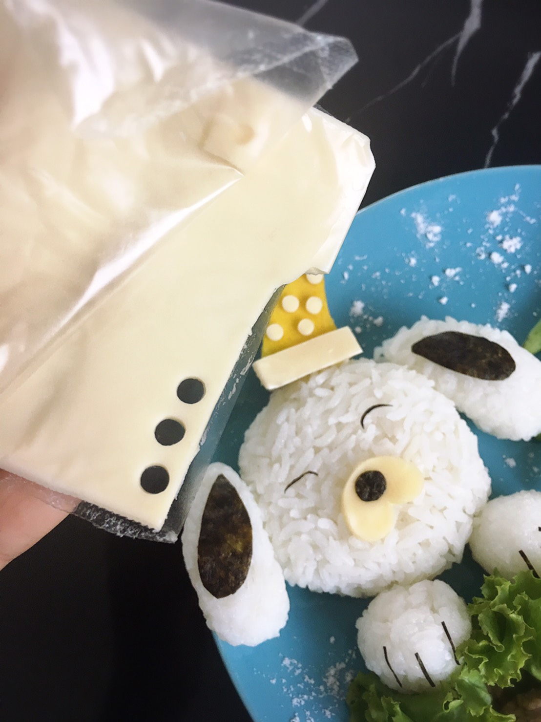 ส่วนจมูกของหมา ก็ใช้ชีส กรีดเป็นรูปหัวใจค่ะ