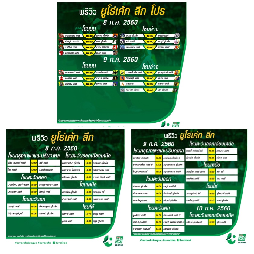 ขอบคุณข้อมูลจาก ยูโร่เค้ก ลีก ผู้สนับสนุนฟุตบอล ยูโร่เค้ก ลีก โปร และ ยูโร่เค้ก ลีก อย่างเป็นทางการ