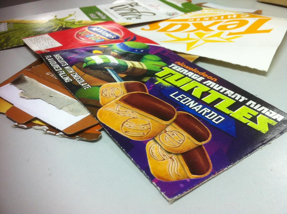 ตอนนี้มีอารมณ์แบบว่า DIY อยากเขียนส่งโปสการ์ดจากกล่องขนม ....... ( ตามรูปถ่าย )