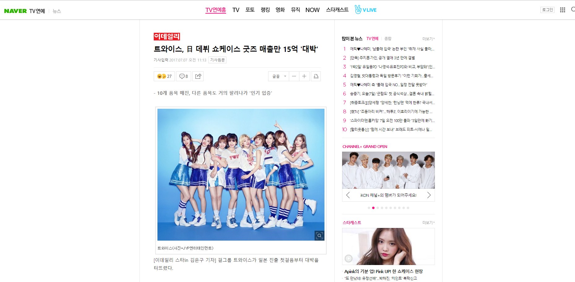 งานโชว์เคสเดบิวท์ของทไวซ์ที่ญี่ปุ่นซึ่งจัดในวันที่ 2กรกฎาคม 2017 ขายสินค้าหน้างานได้เป็นจำนวนเงินกว่า 1.5พันล้านวอนหรือ1.3ล้านดอลล่าสหรัฐหรือ44ล้าาบาท ยินดีกับสาวๆกับลุงผักและกับWarner Music Japanด้วยครับ
