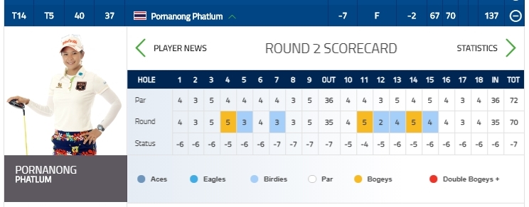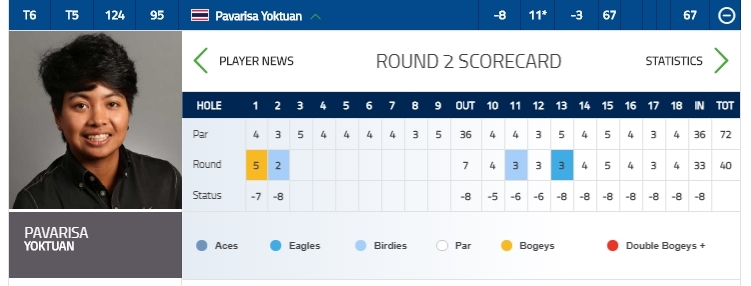 คือโปรเม เอริยา และใน 5 หลุม ทำ 4 โบกี้ และเกมก็ไปหยุดรอไว้ที่ หลุม 7