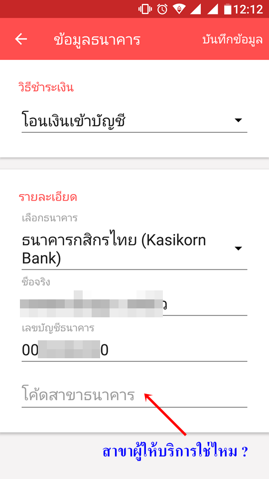 เผอิญจะโอนเงินจาก app ตัวนึงเพื่อเข้าบัญชีธนาคาร แล้วเกิดข้อสงสัยที่ต้องระบุ ได้แก่ code สาขาธนาคาร