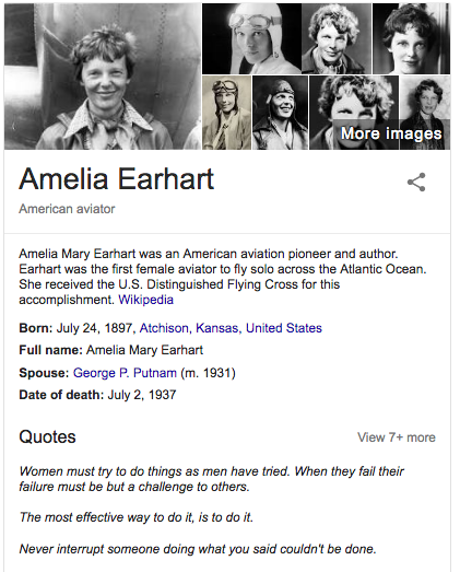 รวมทั้งเธอมีชื่อเสียงอย่างมากในการบินข้านมหาสมุทร Atlantic ในปี 1932