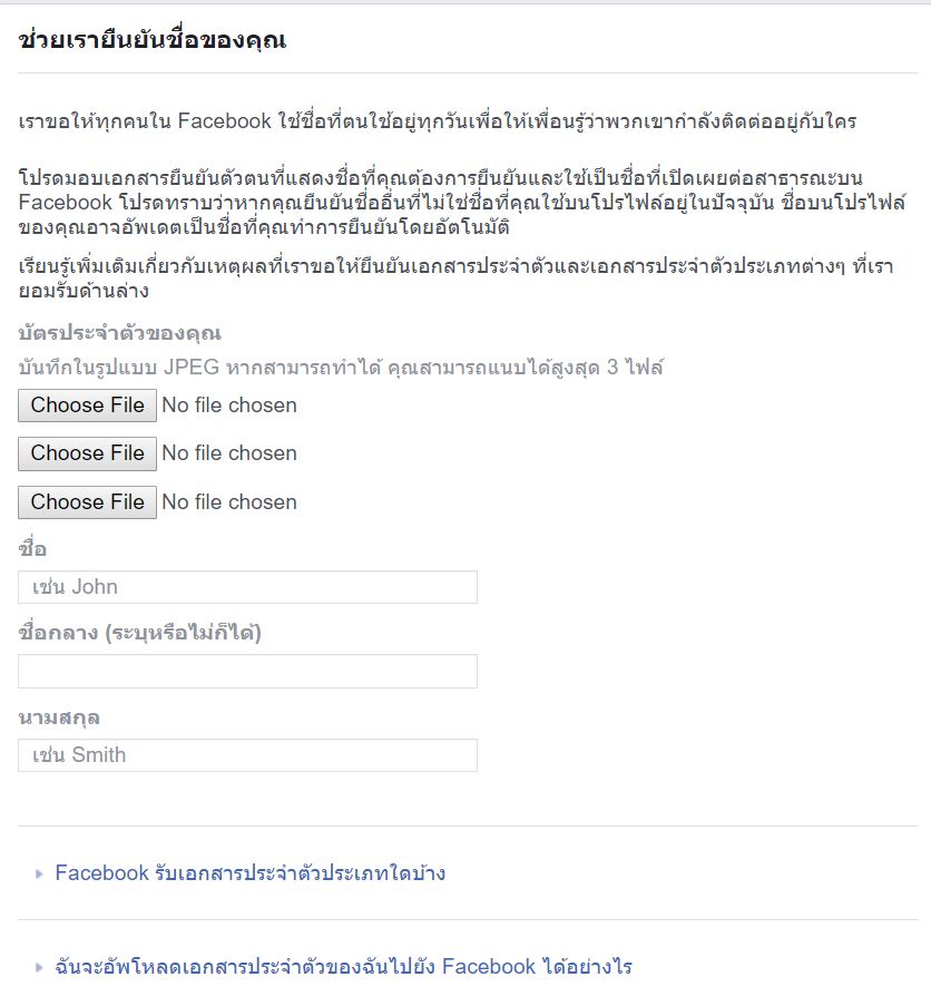 โดน facebook บังคับให้เปลี่ยนชื่อเฟสมารอบที่ 2 แล้วค่ะ รอบแรกเปลี่ยนใหม่ได้เลย แต่วันนี้โดนให้แนบเอกสารยืนยันตัวตนด้วยค่ะ แล้วตอนนี้ก็ยังเข้าเฟสไม่ได้ เหมือนโดนสแปม 55555 แต่ไม่รู้ว่าใช่รึเปล่าอะค่ะ ใ