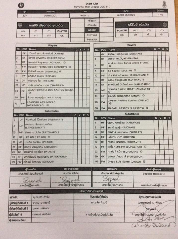 11 ตัวจริง เมืองทอง vs บุรีรัมย์วันนี้ เดียโก้สำรอง !!!