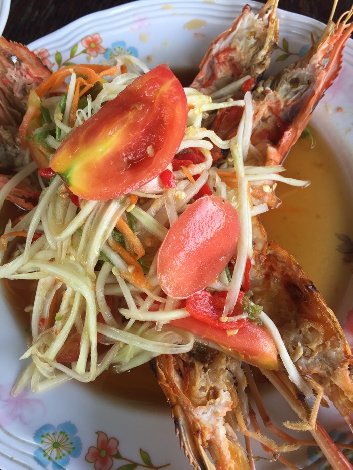จานที่ 3. เป็นส้มตำกุ้งเผา น้ำส้มตำอร่อยค่ะ ราคา 120 บาท น่าเสียดายวันที่ไปข้าวเหนียวก็หมด ขนมจีนก็หมด ต้องทานกับข้าวสวย ความฟินเลยขาดไปนิสนึงค่ะ