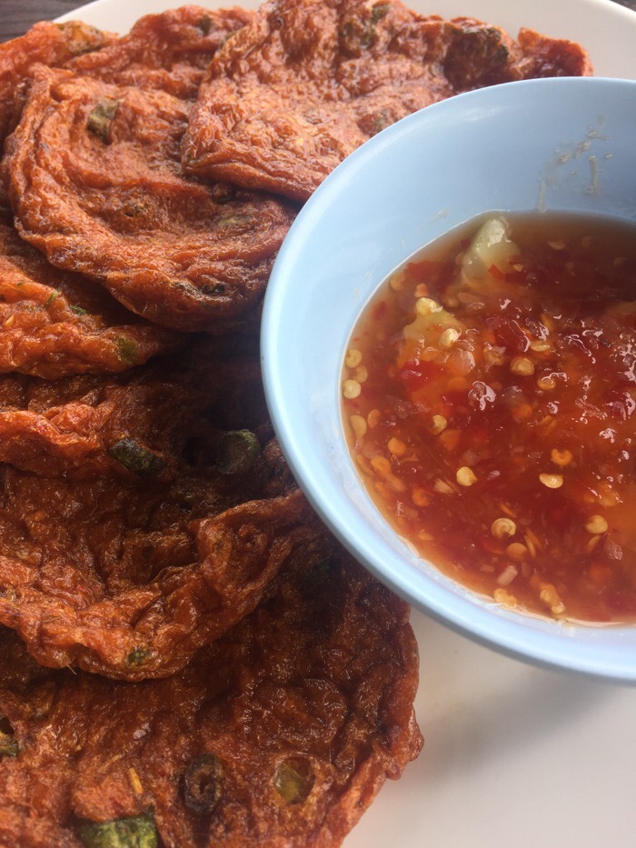 จานที่ 5. เป็นทอดมันปลา ไมรู้ทำจากปลาอะไร แต่ทานอร่อยค่ะ ที่สำคัญ ราคา 50 บาทค่ะ