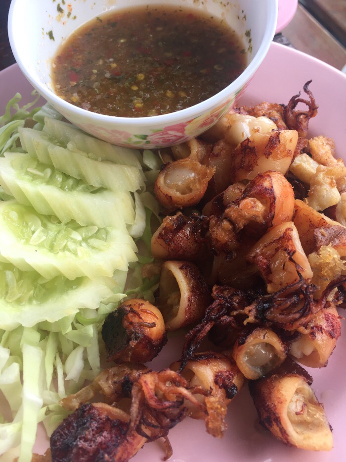 จานที่ 9. หมึกแดดเดียว จานนี้ไม่ผ่านค่ะ หมึกตัวเล็ก มีรสขมๆ ราคา 100บาท