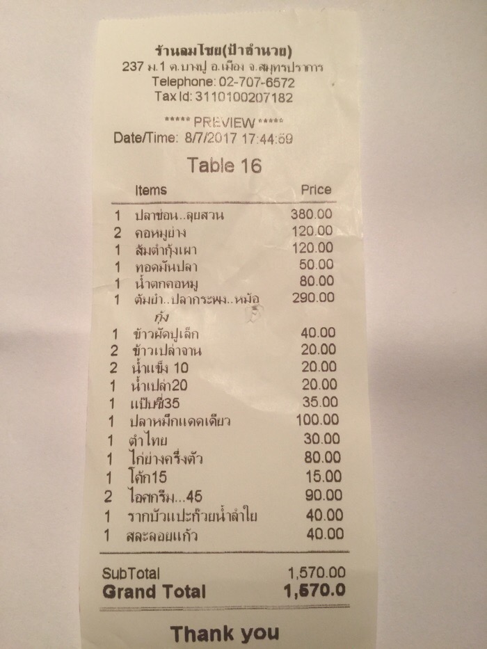 ค่าเสียหายที่ทานกัน 5 คน ในมื้อนี้รวมทิปด้วยอยู่ที่ 1,600 บาท ค่ะ