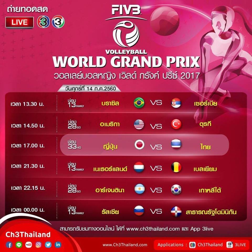 โปรแกรมการถ่ายทอดสด World grand prix 2017 สัปดาห์ที่ 2