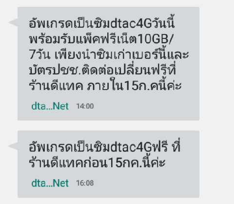วันนี้ทาง dtac. ได้ส่ง sms นี้มาให้