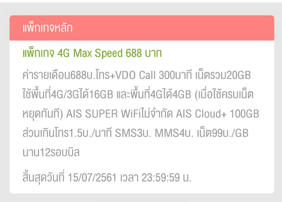ถาม ais บอกเบอร์นี้เป็นแพ็คเกจราคาปกติ 688บาท