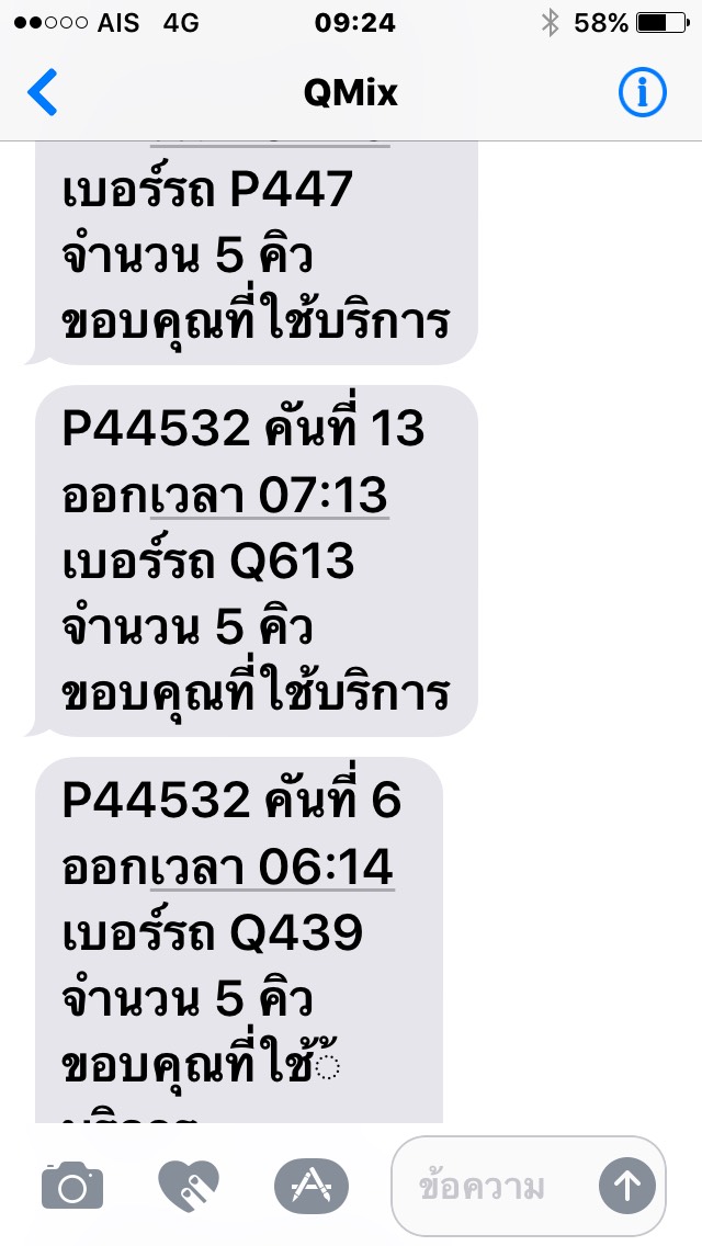ผมไม่เคยใช้บริการรถสาธารณะ หรือจองคิวจากแอฟอะไรเลย แต่ตอนนี้ได้รับ SMS ขึ้นว่ามาจาก QMix ค้นหาเบอร์ก็ไม่มี จะบล็อคก็ไม่ได้ AIS ช่วยตรวจสอบและบล็อคให้หน่อยครับ มาถี่มาก รบกวนหลังไมค์ครับ