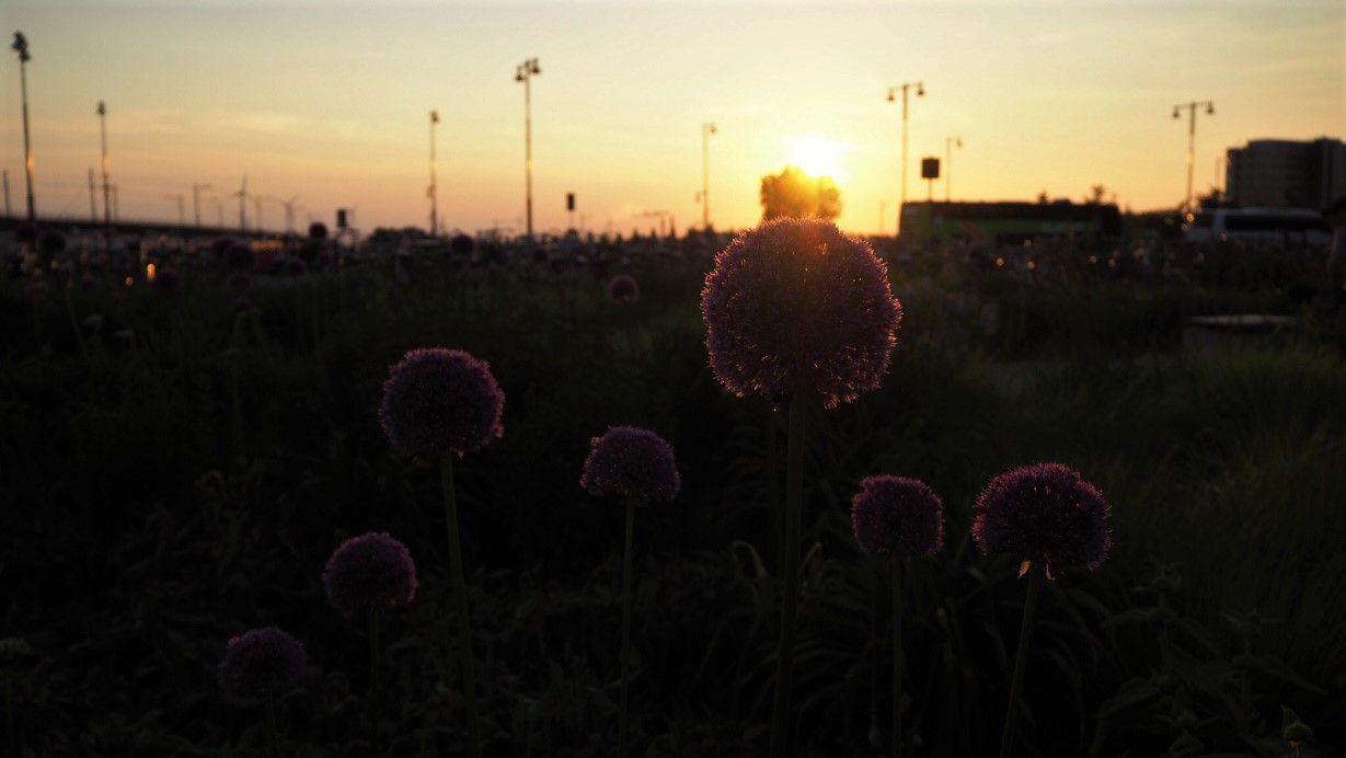 สวนดอกไม้หน้าโรงแรมกับแสงแดดยามเย็น