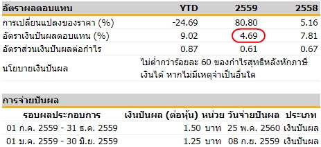 เงินปันผล 2.75 บาท / ราคาปิดของปี59 --> 2.75*100 / 40.5 = 6.79 ซึ่งต่างกันมาก