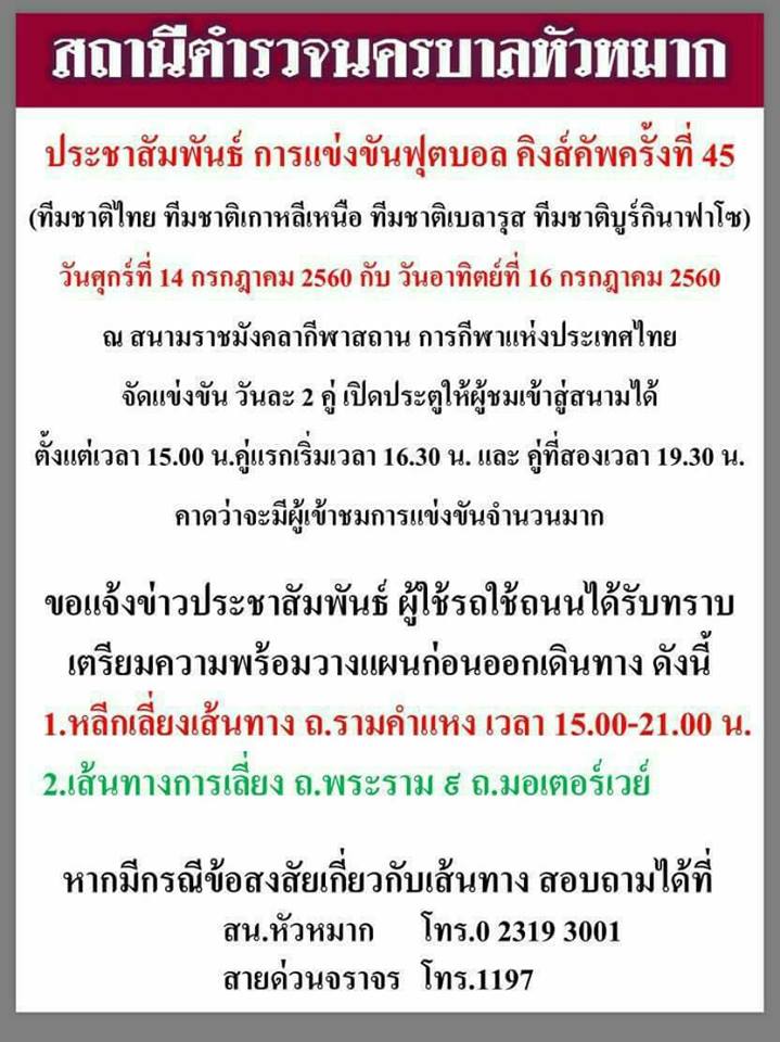 รวมพลบอลไทยสามช่า เชียร์ คิงส์คัพ45 14 16 กค นี้ 10.00 น หน้าอินดอร์ หัวหมาก