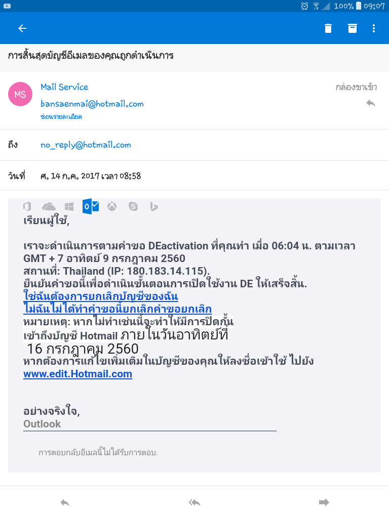 นี่ใช่เมลเตือนจากhotmailจริงไหมครับ