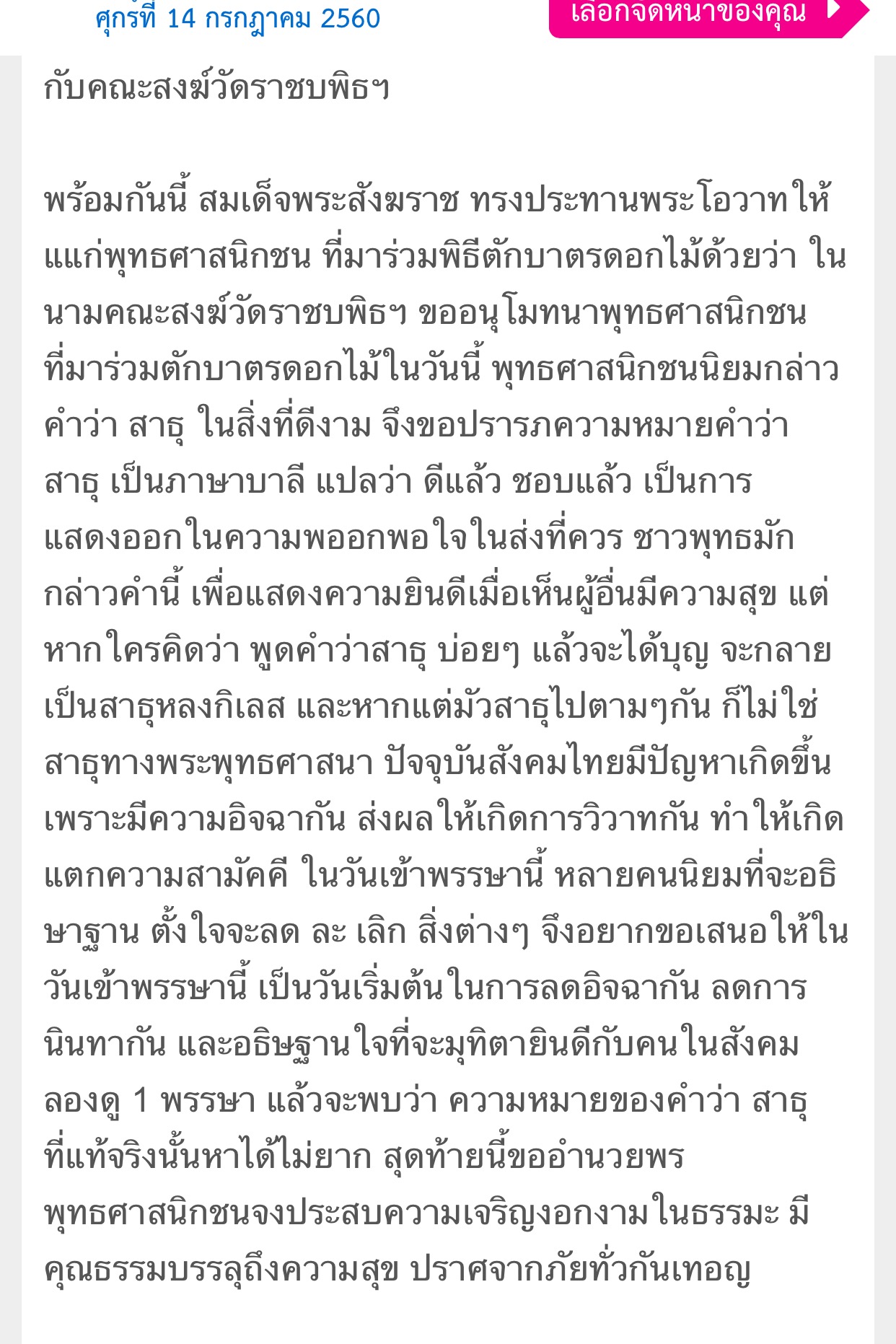 จาก fb สำนักงานเลขานุการสมเด็จพระสังฆราช ทีฆายุโก โหตุ สังฆราชา